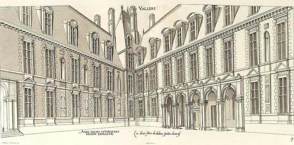 Keywords: Valleri faces int.jpg fr Façades intérieures du château de Vallery le pavillon central et les deux hôtels Les plus excellents bastiments de France Androuet du Cerceau Jacques XVIème siècle PD-old Château de Vallery Le premier volume des plus excellents Bastiments de France |
