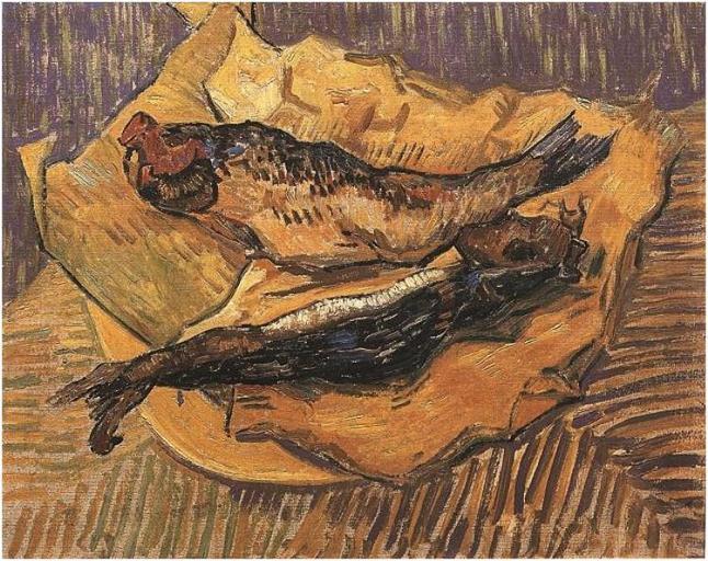 Keywords: Van Gogh Bloaters-on-a-Piece-of-Yellow-Paper-1889.jpg en Still Life Bloaters on a Piece of Yellow Papers Private collection Oil on Canvas 33 x 41cm F510 www vangoghgallery com Vincent Van Gogh 1889 PD-old-100 Paintings by Vincent van Gogh in private collections Herrings in art |