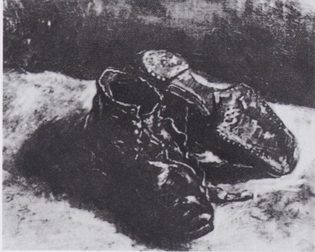 | Keywords: Van Gogh - Ein Paar Schuhe2.jpeg Artwork Creator Vincent van Gogh Ein Paar Schuhe Paris Spring 1887 oil canvas cm 37 5 41 5 private collection Emil Schumacher accession number http //www vangoghgallery com/catalog/Painting/380/Pair 20of 20Shoes 20A html vangoghgallery com<br/>http //www sothebys com/en/auctions/ecatalogue/lot pdf N08239 html/f/24/N08239-24 pdf Sotheby's object history G A Aurier Châteauroux acquired from the artist <br/>Mrs S Williame-Aurier Châteauroux by descent from the above in 1892 <br/>Jacques Williame Châteauroux by descent from the above <br/>M Naessens Brussels acquired from the above through the agency of Robert Sereau in 1943 <br/>Private Collection Belgium acquired from the above in 1962 and sold Christie's London December 8 1999 lot 11 <br/>sold at Sotheby's New York 7 Nov 2006 lot 24 credit line exhibition history Liège Musée des Beaux-Arts; Brussels Palais des Beaux-Arts; Mons Musée des Beaux-Arts Vincent van Gogh 1946-47 no 34 as dating from the Dutch period <br/>Paris Musée de l'Orangerie Vincent van Gogh 1947 no 34<br/>Geneva Musée Rath Vincent van Gogh 1947 no 35 Vincent ~ upper left signature Van Gogh catalogues 332a 1233 repro from art book PD-old-100 DEFAULTSORT Van Gogh 1886; shoes Van Gogh 1886-1887 Paris Still life paintings of shoes by Vincent van Gogh Still life paintings of shoes by Vincent van Gogh Paris 1887 |