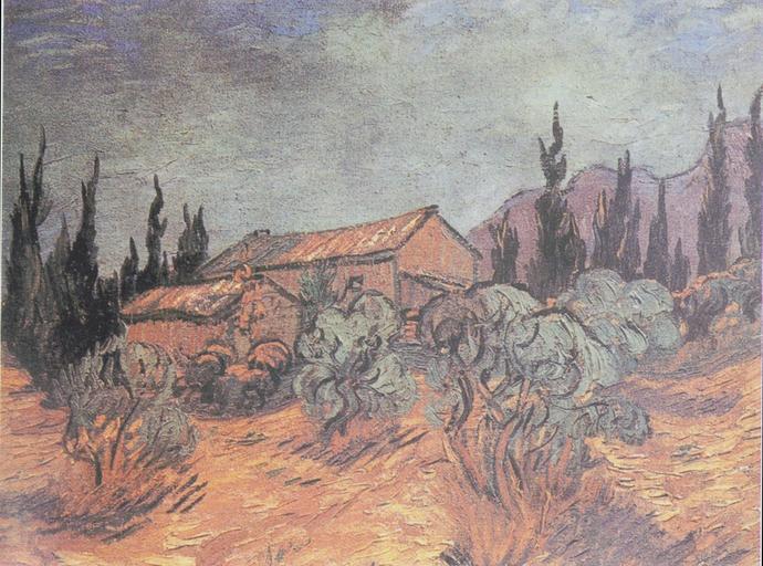 Keywords: Van Gogh - Hütten zwischen Olivenbäumen und Zypressen.jpeg Artwork Creator Vincent van Gogh Hütten zwischen Olivenbäumen und Zypressen Saint-Rémy December 1889 oil canvas 45 5 x 60 cm private collection Brüssel accession number object history credit line Van Gogh catalogues 623 1873 repro from artbook PD-old-100 Olive trees Vincent van Gogh serie Paintings by Vincent van Gogh in private collections |