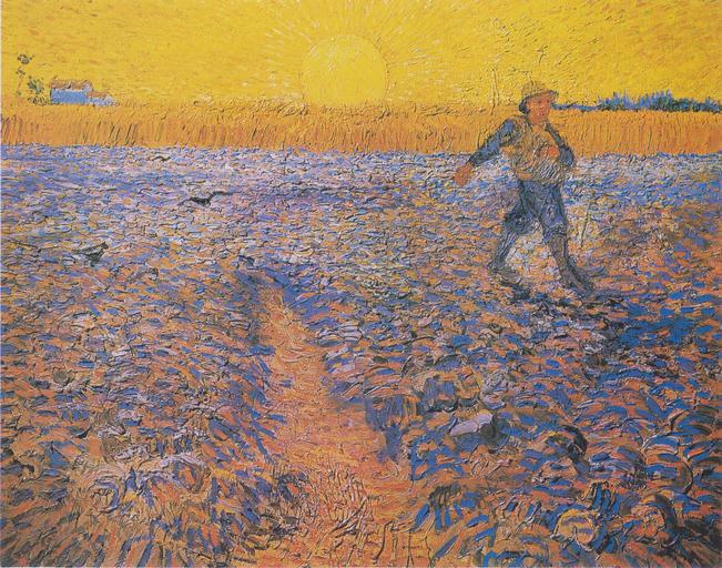Keywords: Van Gogh - Sämann bei untergehender Sonne.jpeg Sämann bei untergehender Sonne Sower at Sunset Oil on canvas 64 x 80 5 cm Otterlo KMM Van Gogh catalogues 422 1470 repro from art book Arles June 1888 Creator Vincent van Gogh PD-old-100 Other versions The Sower Sower at Sunset |
