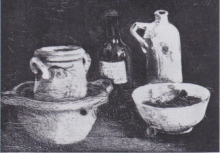 Keywords: Van Gogh - Stillleben mit Steingut und Flaschen.jpeg Artwork Creator Vincent van Gogh Stillleben mit Steingut und Flaschen Nuenen November 1884 oil canvas 40 x 56 cm private collection accession number object history credit line Van Gogh catalogues 57 539 repro from art book PD-old-100 Van Gogh 1884-1885 Paintings by Vincent van Gogh in private collections |