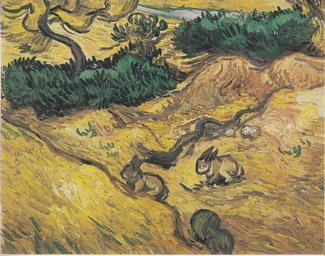 Keywords: Van Gogh - Zwei Kaninchen auf einer Wiese.jpeg Zwei Kaninchen auf einer Wiese Two rabbits in a meadow oil canvas 32 5 x 40 5 cm Amsterdam Van Gogh Museum Van Gogh catalogues 739 1876 repro from artbook Saint-Rémy December 1889 Creator Vincent van Gogh PD-old-100 Other versions Landscape paintings by Vincent van Gogh Saint-Rémy 1889 Landscape paintings by Vincent van Gogh in the Van Gogh Museum Paintings of rabbits |