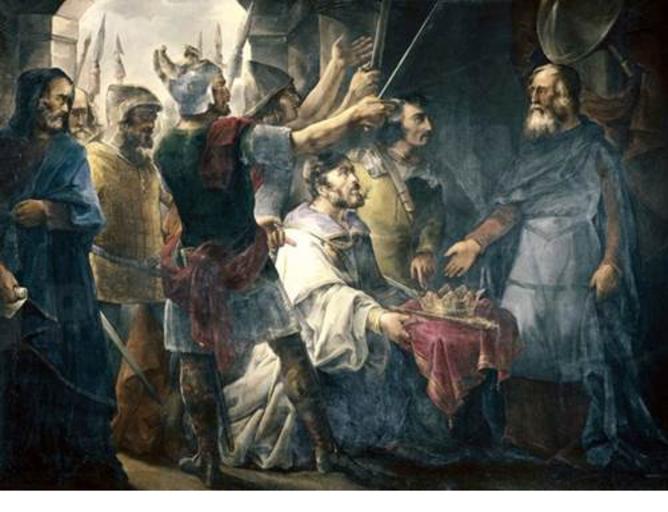 Keywords: Van Halen-Wamba.jpg Wamba ¿ -688 como rey de los Visigodos Wamba rechazó el nombramiento debido a su avanzada edad pero fue forzado por la nobleza a aceptar el trono el día 1 de septiembre del año 672 en la localidad de Gertici o Gérticos después llamada Wamba en su honor y en la que había fallecido su antecessor el rey Recesvinto Por iniciativa propia a fin de que su elección no fuera considerada una usurpación Wamba exigió ser coronado rey en Toledo donde fue ungido el día 20 de septiembre por el obispo Quirico en la iglesia pretoriense de San Pedro y San Pablo Wamba renunció al trono en el año 680 y falleció en el año 688 y Fue sucedido en el trono por el rey Ervigio Technique oil canvas cm 170 128 Institution Real Academia de Bellas Artes de San Fernando 0403 http //ceres mcu es/pages/Main PosterLounge 1843 PD-old-100 Other versions Wamba Francisco de Paula Van Halen 19th-century paintings in the Royal Academy of Fine Arts of San Fernando 1843 paintings in Spain |