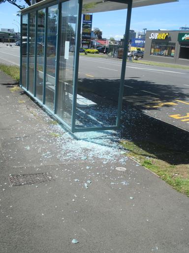 Keywords: Vandalised bus stop, Hamilton.JPG en A vandalised bus stop on Ulster Street Hamilton 2015-11-29 09 43 06 own Wiremu Stadtwald Demchick other versions -37 77894 175 27435 cc-zero Vandalism Bus stops in New Zealand Hamilton New Zealand Uploaded with UploadWizard |