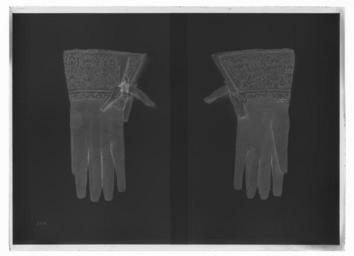 Keywords: Vänsterhandske av vitt glacéskinn, 1650-talet - Livrustkammaren - 52102-negative.tif LSH artwork Friderich Feuerbrun pärlstickare sv Handsken är sydd av vitt glacéskinn vars köttsida vänts utåt och färgats rödbrun Det är en mockahandske med rätt långa fingrar På ryggsidan har sömmarna markerats långt ned Handsken har en 8 cm hög krage som belagts med grått sämskskinn utåt och här försetts med samma guldbroderi som de övriga plaggen Av den knypplade guldspetsen som kantat broderiet såväl mot ytterkanten som inåt har blott den senare lämnats kvar Det är en ca 2 cm bred guldspets med inlagda guldlan Kragen har på insidan fodrats med samma guldbrokadstyg som utgör fodret i tröjan nr 3408 Vid kragsprundet är ett 3 cm brett band med invävd metalltråd fastsytt som en rosett vars svarta atlasband dock slitits bort <br/>Märkt med penna i kragens foder No 41 <br/>Förmodligen tillverkat i Frankrike alt av Fredrich Fewerbrün Friderich Feurbrun Tillhört Karl X Gustav 1622-1660 original caption Kristinas kröning Karl X Gustavs kröning Karl X Gustav och Hedvig Eleonoras bröllop decade 1650 hide Färg vit material skinn size mm 300 LRK Karl X Gustav av Sverige place of origin original filename LN_B04516_007396 57641 inventory number LRK 21047 52102 CC0 Vänsterhandske av vitt glacéskinn 1650-talet - Livrustkammaren - 52102 tif <gallery caption Different images of same object > File Dräkt och värja - Livrustkammaren - 22355 tif </gallery> <gallery caption Related objects > File Tröja av svart atlas 1650-tal - Livrustkammaren - 78791 tif LRK 19340 File Tröja av svart atlas 1650-tal - Livrustkammaren - 35809 tif LRK 19340 File Tröja av svart atlas 1650-tal - Livrustkammaren - 18868 tif LRK 19340 File Tröja av svart atlas 1650-tal - Livrustkammaren - 44145 tif LRK 19340 File Tröja av svart atlas 1650-tal - Livrustkammaren - 61266 tif LRK 19340 File Tröja av svart atlas 1650-tal - Livrustkammaren - 44367 tif LRK 19340 File Tröja av svart atlas 1650-tal - Livrustkammaren - 52705 tif LRK 19340 File Tröja av svart atlas 1650-tal - Livrustkammaren - 1746 tif LRK 19340 File Tröja av svart atlas 1650-tal - Livrustkammaren - 10306 tif LRK 19340 File Livgehäng t 19340-19341 - Livrustkammaren - 70059 tif LRK 19384 File Tröja av svart atlas 1650-tal - Livrustkammaren - 27430 tif LRK 19340 </gallery> |