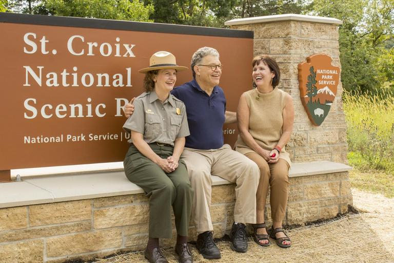 Keywords: dignitaries boom site boomsite sign dedication st croix river stcroixriver outdoor St. Croix National Scenic Riverway Acting Superintendent Julie Galonska, Minnesota Senator Al Franken, and Minnesota Congresswoman Betty McCollum sit on the new gateway sign at Boom Site. St. Croix National Scenic Riverway Acting Superintendent Julie Galonska, Minnesota Senator Al Franken, and Minnesota Congresswoman Betty McCollum sit on the new gateway sign at Boom Site. |