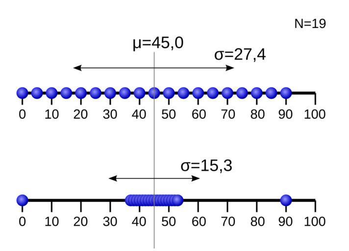 Keywords: Variance commas.svg en Figure illustrating the concept of variance for two different sets of 19 numbers 0 5 90 and 0 37 38 53 90 Note that commas are used as decimal separator which will not suit every locale own DennisM 2011-06-18 Cc-zero Mathematica diagrams Uncategorized 2015 May 1 |
