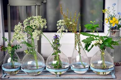 Keywords: vases glass glass vases flowers wildflowers still life balcony decoration series tender