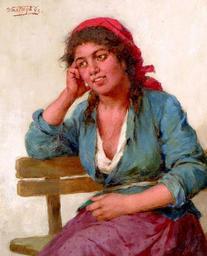 Keywords: Vastagh Várakozás.jpg Artwork Creator György Vastagh Oil on canvas Size cm 37 45 Private collection object history exhibition history credit line top left Vastagh Gy accession number http //axioart com/ axioart com http //axioart com/index php op live_item id 182792 Info http //axioart com/images/live_images/original/858/107 jpg Pic More info http //www nagyhazi hu/tetelek_kereses php msz 108 tid 13960 tp 20 page PD-old-70 Paintings by György Vastagh Portrait paintings of girls |