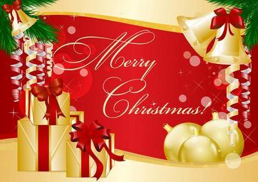 Keywords: card christmas holiday vector bells christmas balls ribbon sparkling ornaments red gold white greetings