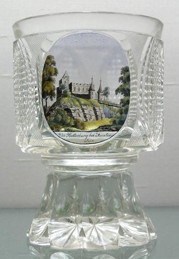 Keywords: Vedutenglas Ritterburg bei Fürstenstein KGM W1964-55.jpg Vedutenbecher žRitterburg bei Fürstenstein abgebildet ist die Alte Burg bei Schloss Fürstenstein polnisch Zamek Książ in Niederschlesien ; Gelbätze Emailmalerei <br />Kunstgewerbemuseum Berlin Inv Nr W1964 55 own 2009 User FA2010 Drinking glasses Kunstgewerbemuseum Berlin Książ castle |