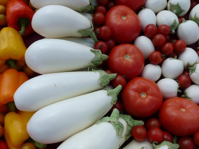 Keywords: vegetables tomato food frisch delicious market italian vegetarian healthy eggplant paprika vitamins colorful pepper raw food