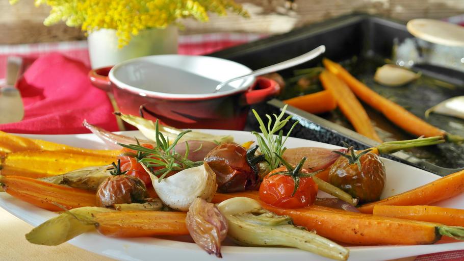 Keywords: vegetables vegetable pan barbecue tomatoes carrots yellow beets oil salt pepper cook healthy vegetarian vegan trusses frisch vitamins food red yellow health conscious edible piquant