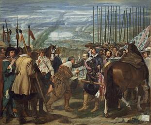 Keywords: Velázquez - de Breda o Las Lanzas (Museo del Prado, 1634-35).jpg Artwork Creator Diego Velázquez The Surrender of Breda or žThe Lances Las lanzas o La rendición de Breda De overgave van Breda Die à bergabe von Breda 1635 oil on canvas cm 307 367 institution Prado 1 9A P01172 https //www museodelprado es/coleccion/galeria-on-line/galeria-on-line/obra/la-rendicion-de-breda-o-las-lanzas/ no_cache 1 Museo del Prado Madrid object history Colección Real Palacio del Buen Retiro Madrid 1701 nº 244; Palacio Real Nuevo antecámara de la serenÃsima infanta 1772 nº 244; Palacio Real Nuevo Madrid pieza de vestir 1794 nº 244; Palacio Real Madrid 1ª pieza de vestir 1814-1818 nº 244 credit line exhibition history source Other versions Q1133420 PD-old-100 Uploaded with UploadWizard La rendición de Breda Taken with Hasselblad H4D-50 |