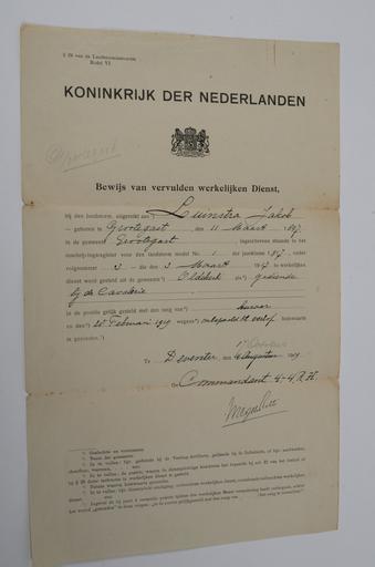 Keywords: Veldzakboekje, item 9.jpg Jacob Luinstra 11-03-1897 geboren overleden op 20-06-1967 grootvader van de bezoeker Het object is o a een carte de visite; dhr Luinstra staat op de foto in zijn officiele uniform Jacob Luinstra zat bij de huzaren van Boreel Naast een foto brengt de bezoeker ook een zakboekje en landstormpapieren mee Hij was gemobiliseerd en gelegerd te Amersfoort Jacob Luinstra ging in 1919 uit dienst Hij ging met verlof naar Woerden; een verlofbewijs vervoerbewijs van Visvliet naar Woerden Ook brengt bezoeker foto ™s mee van het regiment Achterop de foto staan de namen van de huzaren uit het regiment De familie Luinstra had een boerderij in Oldekerk Groningen exhibition history object history object type Europeana 1914-1918 Copyright information Europeana 1914-1918 PD-own upload Europeana claims no rights in its digitisation in accordance with its http //pro europeana eu/publications/the-europeana-public-domain-charter Public Domain charter Europeana 1914-1918 project place of creation place of discovery http //www europeana1914-1918 eu/en/contributions/15385 Veldzakboekje item 9 Uploaded with GWToolset Veldzakboekje item 9 http //www europeana1914-1918 eu/attachments/162239/15385 162239 full jpg World War I Europeana 1914-1918 batch upload needs checking |