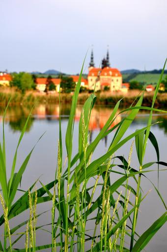 Keywords: velehrad monastery pond water plants reflection edge of the pond reeds water-level