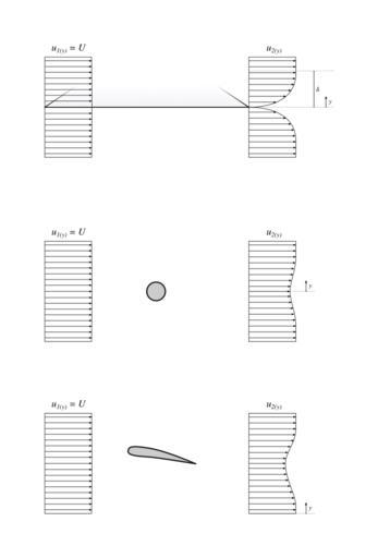 Keywords: Velocity profiles integral analysis.svg en Velocity profiles across a fluid flowing around various solid bodies These diagrams are used in exercises in fluid mechanics whose objective is the calculation of the net effect of the fluid flow around the object using only upstream and downstream velocity measurements 2015-04 own Olivier Cleynen other versions cc-zero SVG physics Uploaded with UploadWizard |