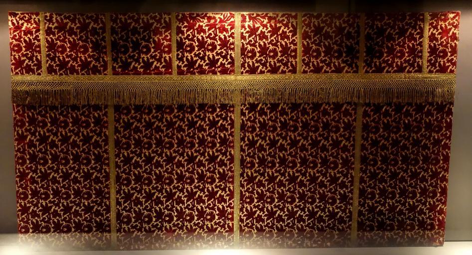 Keywords: Velvet altar frontal, 17th century, Ligurian, view 1, from the Cathedral of San Lorenzo - Museo Diocesano (Genoa) - DSC01852.JPG en Exhibit in Museo Diocesano Via Tommaso Reggio 20 r Genoa Italy All artwork in this museum is old enough so that it is in the public domain Photography was permitted in the museum without restriction 2013-09-25 10 38 04 own Daderot cc-zero Textiles in the Museo Diocesano Genoa Uploaded with UploadWizard Antependium |