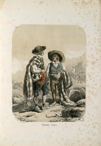 Keywords: Venasque (Aragon) - Fonds Ancely - B315556101 A DAGUZAN 002.jpg Album de 12 lithographies en couleurs aquarellées Cartonnage d'éditeur titre lithographié avec vignette Bon état foxing important visible surtout dans les marges Ancely René 1876 - 1966 Possesseur fre public domain domaine public B315556101_A_DAGUZAN_002 jpg image/jpeg 1 f de pl en coul ; 45 cm http //numerique bibliotheque toulouse fr/collect/general/index/assoc//ark /74899/B315556101_A_DAGUZAN_002 dir/B315556101_A_DAGUZAN_002 jpg Bibliothèque municipale de Toulouse A-DAGUZAN 1 Creator Léon Victor Daguzan http //catalogues toulouse fr/web2/tramp2 exe/do_keyword_search/log_in setting_key BMT1 servers 1home query p000282 vignette http //numerique bibliotheque toulouse fr/collect/general/index/assoc//ark /74899/B315556101_A_DAGUZAN_002 dir/B315556101_A_DAGUZAN_002_thumb jpeg 1849 Venasque Aragon B315556101_A_DAGUZAN_002 colour print - lithography - print - color lithograph Hats in art Vests Clothing in art Socks National costumes in art Men in art Mountains in art Mules Mules in art Benasque Léon Victor Daguzan Scanned with i2s Digibook Suprascan 6002 RGB |