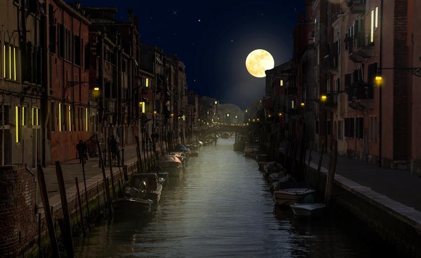 Keywords: venice night channel romantic light moon image overlay atmospheric full moon