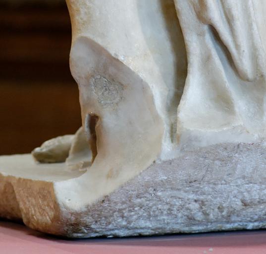 Keywords: Venus de Milo Louvre Ma399 n9.jpg So-called Venus de Milo Aphrodite from Melos detail of the lower block join surface of the left foot and break of the plinth Parian marble ca 130-100 BC Found in Melos in 1820 Vénus de Milo détail du bloc inférieur surface de joint du pied gauche rapporté et cassure de la plinthe Marbre de Paros vers 130-100 av J -C Provenance Mélos moderne Milo 1820 H 2 02 m 6 ft 7 ½ in Museum Louvre Temporary location Department of Paintings Sully first floor room 74 Hamiaux M Les Sculptures grecques II Paris 1998 no 52 pp 41-44 object history credit line Gift of the Marquis de Rivière to Louis XVIII of France 1821 accession number Ma 399 LL 299 Jastrow 2007 other versions Venus de Milo |