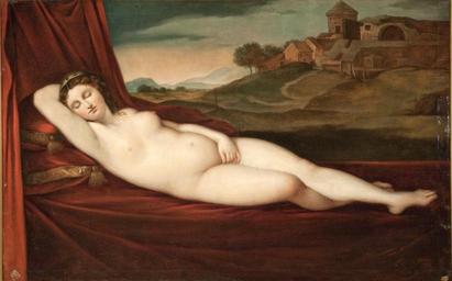 | Keywords: Venus tendida (Real Academia de Bellas Artes de San Fernando).jpg after y anteriormente atribuido a La obra representa a la diosa Venus desnuda y tendida en un lecho oil on canvas Size cm 169 107 Institution Real Academia de Bellas Artes de San Fernando http //ceres mcu es/pages/Main accession number 0350 http //ceres mcu es/pages/Main PD-old-100 Paintings of Venus Aphrodite Paintings after Giorgione Paintings attributed to Titian Paintings in the Royal Academy of Fine Arts of San Fernando |