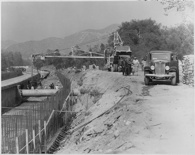 Keywords: Verdugo Wash. View looking up the channel from the section between Glenoaks Blvd. and Royal Blvd. showing concrete... - NARA - 295324.tif Verdugo Wash View looking up the channel from the section between Glenoaks Blvd and Royal Blvd showing concrete mixer placing floor of storm drain for one side channel Project 13-130-ERA-Hired Labor Volume II Picture No 3 1936 Scope and content General notes 295324 Local identifier Department of Defense Department of the Army Office of the Chief of Engineers Los Angeles District 09/18/1947 - 06/14/1979 NARA's Pacific Region Riverside NRHAR 23123 Cajalco Rd Perris CA 92570 Record group Record Group 77 Records of the Office of the Chief of Engineers 1789 - 1999 Record group ARC 406 General Administrative Files compiled 1935 - 1952 Series ARC 295295 File unit 800 912 Quarterly Project Photos Vols 1-3 ca 1936 - ca 1936 File unit ARC 295323 Variant control numbers NAIL Control Number NRHL-77-LAGA1-800PHOTOS4-GOF01<br /> Other Identifier General Admin Files 1935-1950 Box 45 Files 800 912 Quarterly Proj Photos V1-3 yes Other versions <gallery> File Verdugo_Wash _View_looking_up_the_channel_from_the_section_between_Glenoaks_Blvd _and_Royal_Blvd _showing_concrete _-_NARA_-_295324 jpg jpg </gallery> NARA-cooperation PD-USGov Creeks in California Los Angeles River Los Angeles in the 1930s Construction sites in Los Angeles County California Flood protection in the United States NARA images of Los Angeles County California Black and white photographs of Los Angeles NARA TIF images with categorized JPGs Glendale California |