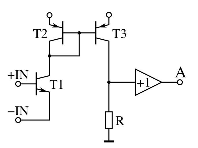 Keywords: Vereinfachtes Prinzip des CV-OP.svg de Vereinfachte Prinzipschaltung eines CV-OP own Stündle Inkscape Current-feedback operational amplifiers