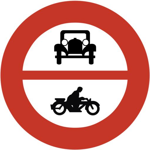 View Original: | Verkehrsverbot für Kraftwagen und Krafträder, vor 1945.svg (839x839) | |||
