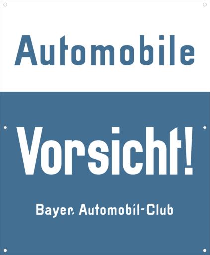 Keywords: Verkehrszeichen - Automobile Vorsicht! BAC.svg de Verkehrszeichen des Bayerischen Automobil-Clubs BAC Die blau-weiße Warnungstafel wurde wohl zwischen 1918 und 1934 hergestellt Der 1899 gegründete BAC wird auf der Tafel nicht žKöniglich Bayerischer Automobil-Club genannt Diesen Namen führte er zwischen 1910 und 1918 Quelle http //web archive org/web/20160707103537/http //nummernschildmuseum de/bayerischer-automobilclub/ http //web archive org/web/20160707103537/http //nummernschildmuseum de/bayerischer-automobilclub/ Selbst gezeichnet und interpretiert durch Mediatus Mediatus 2016-07-07 other fields + Signs User Mediatus/no-new-version Cc-zero PD-VzKat German language signs SVG road signs in Germany Diagrams of danger warning road signs of Germany Diagrams of information road signs of Germany Bayerischer Automobil-Club Blue and white signs |
