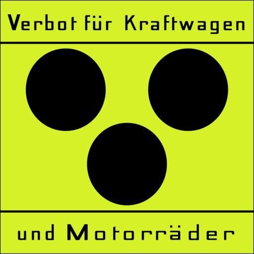 Keywords: Verkehrszeichen - Verbot für Kraftfahrzeuge und Motorräder, 1910.svg de Verkehrszeichen Verbot für Kraftfahrzeuge und Motorräder Mit der ersten Novelle der Automobilverkehrsordnung vom 3 Februar 1910 wurden im ganzen Deutschen Reich drei neue Verkehrszeichen eingeführt Kraftfahrzeuge 15 km Verbot für Kraftwagen und Motorräder Verbot für Kraftwagen offen für Motorräder Die Schilder waren nach einer vorgeschriebenen Vorlage in den einzelnen deutschen Ländern von dazu ausgewählten Betrieben in Emaillie auszuführen Quelle Verordnung über den Verkehr mit Kraftfahrzeugen In Reichsgesetzblatt 5 ausgegeben zu Berlin den 10 Februar 1910 S 389 ff Reichsgesetzblatt 5 ausgegeben zu Berlin den 10 Februar 1910 S 389 ff Selbst gezeichnet und interpretiert durch Mediatus Mediatus 19 Juni 2016 + Signs User Mediatus/no-new-version Cc-zero PD-VzKat German language signs SVG road signs in Germany Diagrams of historic road signs of Germany 1910 set Diagrams of historic road signs of Germany 1925 set Motor vehicles forbidden signs Car-related prohibitory road signs Motorcycle-related prohibitory road signs |