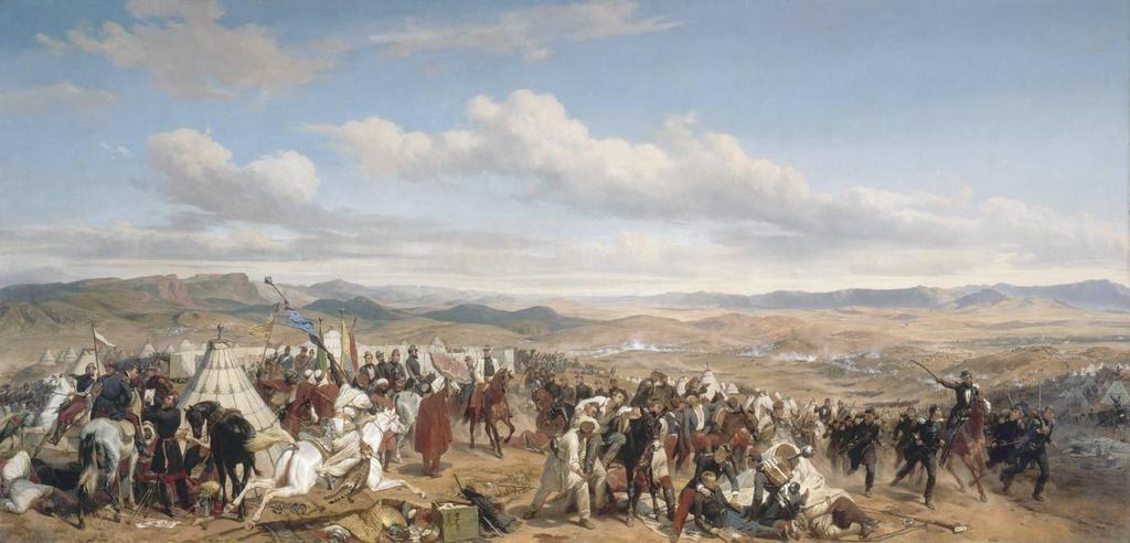 | Keywords: Vernet - Bataille d'Isly - 1846.jpg  Artwork creator Horace Vernet Bataille d ™Isly 14 août 1844 1846 Oil on canvas cm 1040 514 Institution Versailles http //www chateauversailles fr/fr/ Depicts the Battle of Isly on 14 august 1844 L ™Histoire par l ™image http //www histoire-image org/site/oeuvre/analyse php i 611 d 1 a 66 digital version produced by Agence photographique de la Réunion des musées nationaux http //www photo rmn fr/cf/htm/Home aspx MV 2028 ; INV 8389 ; LP 6643 See http //www culture gouv fr/public/mistral/joconde_fr ACTION RETROUVER FIELD_1 DOMN VALUE_1 FIELD_2 Ctyob VALUE_2 FIELD_3 AUTR VALUE_3 FIELD_4 Clieu VALUE_4 FIELD_5 REPR VALUE_5 FIELD_6 Cdate VALUE_6 FIELD_7 Cdecv VALUE_7 FIELD_8 LOCA VALUE_8 FIELD_9 N b0 20inventaire VALUE_9 MV 202028 FIELD_10 Titre VALUE_10 NUMBER 1 GRP 0 REQ 28 28MV 202028 29 20 3aINV 20 29 USRNAME nobody USRPWD 4 24 2534P SPEC 9 SYN 1 IMLY MAX1 1 MAX2 1 MAX3 100 DOM All entry on Joconde Other versions 100px PD-old-100 Paintings by Horace Vernet 19th-century paintings in the Musée national du Château de Versailles 1846 oil on canvas paintings in France 19th-century paintings of battles French army under king Louis-Philippe 1830-1848 History of Morocco Wars of France |