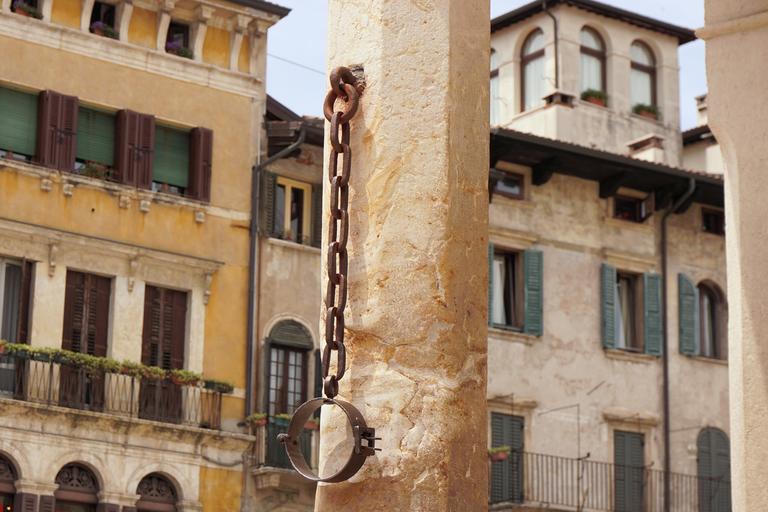 Keywords: verona italy punishment penalty shackles iron old town old historically pillory inquisition detention arrest chain