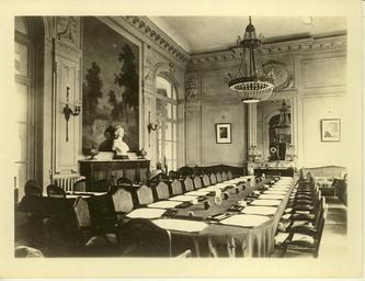 Keywords: peace versailles treaty monochrome indoor Local Accession Number: 853 Description: Conference table at the peace conference. Photographer: Unknown Source: Unknown Size: 6x9 Medium: Print, Black and White Date: 1919? Local Accession Number: 853 Description: Conference table at the peace conference. Photographer: Unknown Source: Unknown Size: 6x9 Medium: Print, Black and White Date: 1919? |
