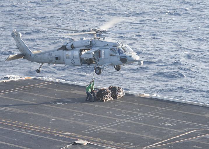 Keywords: Vertical replenishment in the Atlantic 130130-N-HG389-274.jpg en An MH-60S Sea Hawk assigned to the Dusty Dogs of Helicopter Sea Combat Squadron 7 delivers cargo from aircraft carrier USS Harry S Truman to frigate USS Kaufman during a vertical replenishment Truman is underway conducting a composite training unit exercise in preparation for its upcoming deployment 2013-01-30 HSC https //www dvidshub net/image/828039 130130-N-HG389-274 2013-02-05 23 59 ATLANTIC OCEAN PD-USGov-Military-Navy MH-60S Seahawk USS Harry S Truman CVN-75 Images from DoD uploaded by Fæ
