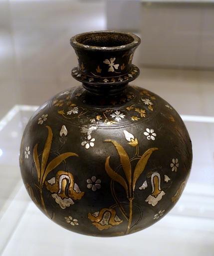 | View Original: | Vessel of a water pipe (huqqa), Deccan, Bidar, 17th century, zinc inlaid with silver and brass - Ethnological Museum, Berlin - DSC01559.JPG (3369x4024) | |||