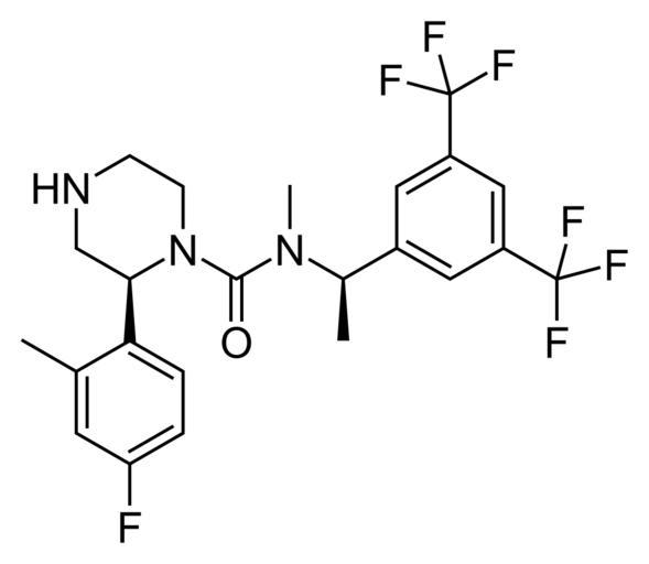 Keywords: Vestipitant.svg Skeletal formula of vestipitant Created using http //www acdlabs com/download/chemsk html ACD/ChemSketch 10 0 Inkscape and vim Own work after cite journal Di Fabio R Griffante C Alvaro G et al Discovery Process and Pharmacological Characterization of 2- S - 4-Fluoro-2-methylphenyl piperazine-1-carboxylic Acid 1- R - 3 5-Bis-trifluoromethylphenyl ethylmethylamide Vestipitant as a Potent Selective and Orally Active NK<sub>1</sub> Receptor Antagonist J Med Chem 2009 April PMID 19388677 10 1021/jm900023b 2009-04-27 Fvasconcellos NK1 receptor antagonists Piperazines Carbamides Trifluoromethylbenzenes Monofluorobenzenes |