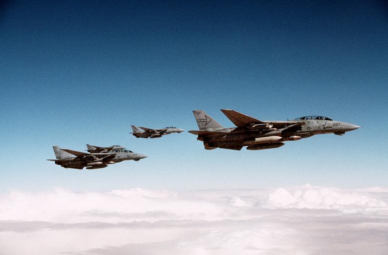 Keywords: VF-103 DStormDN-ST-92-08218.jpg F-14B Tomcat aircraft fly in formation as they wait their turn for refueling during Operation Desert Storm in 1991 The two aircraft in the foreground are from Fighter Squadron 103 V�F-103 while the two in the background are from Fighter Squadron 74 VF-74 ; both were operating from USS Saratoga CV-60 as part of the Battle Force Red Sea DN-ST-92-08218 Navy http //www defenseimagery mil/imagery html guid 1604f6abb5786d8075177d97a4da6c23080fdfcb 1991-02-26 Lt Cmdr Dave Parsons PD-USGOV-MILITARY-NAVY PD-USGov-Military-Navy Original upload log page en wikipedia VF-103_DStormDN-ST-92-08218 jpg 2007-01-15 01 43 HJ32 640×421× 24065 bytes <nowiki>DoD image from DVIC website</nowiki> Aircraft formation flight of F-14A Tomcat Aerial photographs of F-14 Tomcat in flight Fighter Squadron 103 United States Navy |