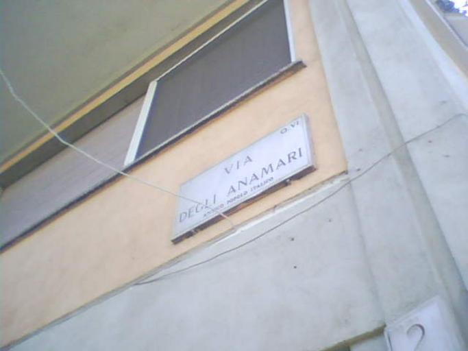 Keywords: Via degli Anamari.JPG it Roma dedica una via agli Anamari nel quartiere Tiburtino Porta Maggiore own Fontema 2008-09-01 Street signs in Rome Anamari Via degli Anamari Rome