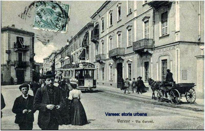| Keywords: Via Garoni vista da piazza XX Settembre. L'edificio a sinistra che fa angolo con via Mazzini è stato sostituito negli anni '60 da un grande magazzino. L'edificio a destra, sede della Forzinetti Mario & Carlo (calzature) è stato abbattuto a fine anni '80. tram varese piazzaxxsettembre viavittorioveneto viagaroni |