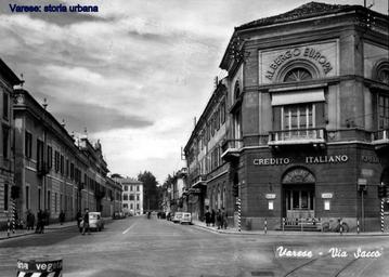 Keywords: varese via luigi sacco vialuigisacco outdoor road architecture building train vehicle monochrome A sinistra uno scorcio di casa Sacco/Ghirlanda (arch. Francesco Peverelli, 1808) sostituita nel 1964 dal palazzo della Banca d'Italia (arch. Ignazio Gardella). A seguire il Palazzo Estense (arch. Giuseppe Antonio Bianchi, 1766-73), sul fondo l'edificio multipiano della scuola media che venne costruito nel 1903 e abbattuto negli anni '70. A destra la casa ad angolo che ospitava l'albergo Europa (1855). A sinistra uno scorcio di casa Sacco/Ghirlanda (arch. Francesco Peverelli, 1808) sostituita nel 1964 dal palazzo della Banca d'Italia (arch. Ignazio Gardella). A seguire il Palazzo Estense (arch. Giuseppe Antonio Bianchi, 1766-73), sul fondo l'edificio multipiano della scuola media che venne costruito nel 1903 e abbattuto negli anni '70. A destra la casa ad angolo che ospitava l'albergo Europa (1855). |