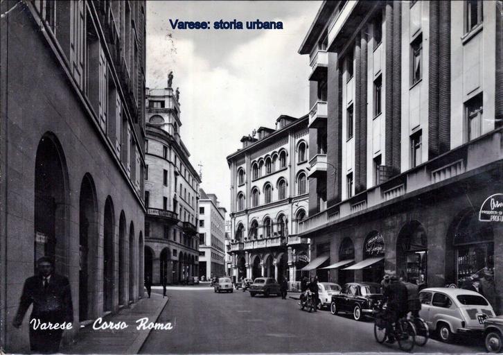 | Keywords: varese corso roma corsoroma corso aldo moro corsoaldomoro via vittorio veneto viavittorioveneto road architecture building outdoor In centro corso Roma (ora Moro) con a sinistra palazzo Sciarini (1930-33 arch. Aldo Scala e ing. Antonino Mazzoni) e a destra l'edificio su portici di gusto eclettico dell'ing. Paolo Cantù (1889). In via Vittorio Veneto a sinistra il nuovo palazzo del Credito Varesino e a destra l'edificio che ha sostituito l'ex hotel Italia. In centro corso Roma (ora Moro) con a sinistra palazzo Sciarini (1930-33 arch. Aldo Scala e ing. Antonino Mazzoni) e a destra l'edificio su portici di gusto eclettico dell'ing. Paolo Cantù (1889). In via Vittorio Veneto a sinistra il nuovo palazzo del Credito Varesino e a destra l'edificio che ha sostituito l'ex hotel Italia. |