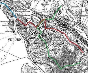 | Keywords: Viborg Tram Map.JPG en Vyborg tram route map in the 1930s Line 1 - red / Line 2 - green / Line 3 - blue fi Viipurin raitoliikenteen linjat 1930-luvulla Linja 1 punainen Raatihuoneentori - Ristimäki / Linja 2 vihreä Papula - Kelkkala / Linja 3 sininen Turun silta - Palotori 1939 Vyborg map 1939 National Land Survey of Finland other versions PD-Art Uploaded with UploadWizard Tram transport in Vyborg Maps of Vyborg Vyborg in the 1930s | ||||