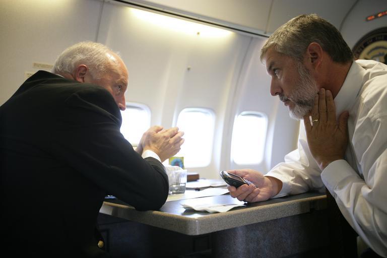 View Original:Vice_President_Cheney_Talks_with_David_Addington_Aboard_Air_Force_Two.jpg (4992x3328)
