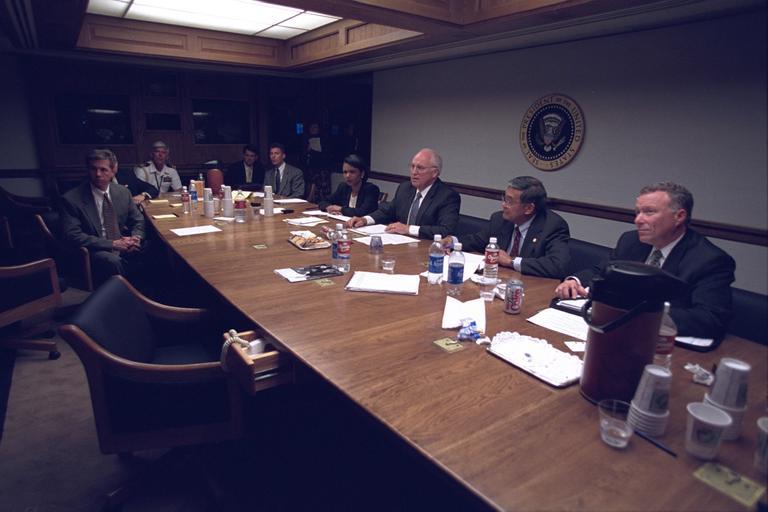 View Original:Vice_President_Cheney_with_Senior_Staff_in_the_President's_Emergency_Operations_Center_(PEOC).jpg (3072x2048)