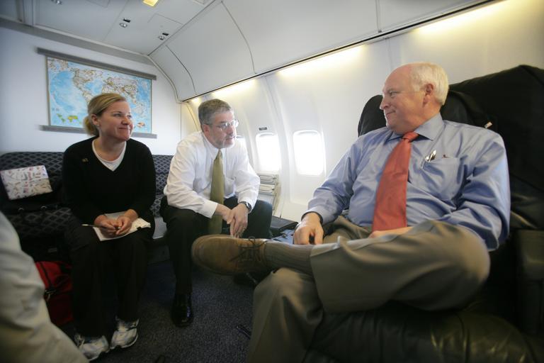 View Original:Vice_President_Cheney_with_David_Addington_and_Lea_Anne_McBride_Aboard_Air_Force_Two.jpg (4992x3328)
