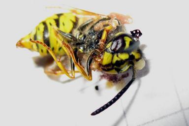 Keywords: insect wasp dead paper insekt wespe tot papier macro This wasp fell victim to a co-worker's dislike. This wasp fell victim to a co-worker's dislike.