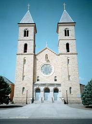 Keywords: VictoriaKansasCathedralOfThePlainsFront.jpg Kevyn St Fidelis Church The Cathedral of the Plains front view Victoria Kansas USA Photo date 8-SEP-1997 Photo taken by Wikimedia Commons user Kevyn Jacobs released into the public domain thumb right Informational marker in front of the church An informational marker in front of the church reads St Fidelis Church Victoria Kansas CATHEDRAL OF THE PLAINS Capuchin-Franciscan Friars Erected between 1908 and 1911 by German and German Russian Catholics this native limestone edifice is one of the largest buildings on the Great Plains Its twin limestone towers soar 141 feet above its 220 feet by 73 feet foundation Placing of the 100-pound blocks was by hand assisted only by block and tackle Besides collectively contributing 132 000 for the project each parishioner was required to haul six wagon loads of stone from the quarries in southern Ellis County Moving spirit of the erection of Victoria's fourth Catholic Church building was Father Jerome Mueller a Capuchin-Franciscan Called the Cathedral of the Plains by William Jennings Bryan the church was approved by the National Park Service on May 14 1974 for entry in the National Register of Historic Places as a building of architectural significance Saint Fidelis of Sigmaringen Church Victoria Kansas Church towers in Kansas 1997 in Kansas Churches in the United States photographed in 1997 September 1997 in the United States Photographs taken on 1997-09-08 Twin church towers in the United States |