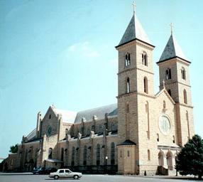 | Keywords: VictoriaKansasCathedralOfThePlainsSide.jpg 71000315 Kevyn St Fidelis Church The Cathedral of the Plains side view Victoria Kansas USA Photo date 8-SEP-1997 Photo taken by Wikimedia Commons user Kevyn Jacobs released into the public domain thumb right Informational marker in front of the church An informational marker in front of the church reads St Fidelis Church Victoria Kansas CATHEDRAL OF THE PLAINS Capuchin-Franciscan Friars Erected between 1908 and 1911 by German and German Russian Catholics this native limestone edifice is one of the largest buildings on the Great Plains Its twin limestone towers soar 141 feet above its 220 feet by 73 feet foundation Placing of the 100-pound blocks was by hand assisted only by block and tackle Besides collectively contributing 132 000 for the project each parishioner was required to haul six wagon loads of stone from the quarries in southern Ellis County Moving spirit of the erection of Victoria's fourth Catholic Church building was Father Jerome Mueller a Capuchin-Franciscan Called the Cathedral of the Plains by William Jennings Bryan the church was approved by the National Park Service on May 14 1974 for entry in the National Register of Historic Places as a building of architectural significance 1997 in Kansas Churches in the United States photographed in 1997 September 1997 in the United States Saint Fidelis of Sigmaringen Church Victoria Kansas Photographs taken on 1997-09-08 Twin church towers in the United States |